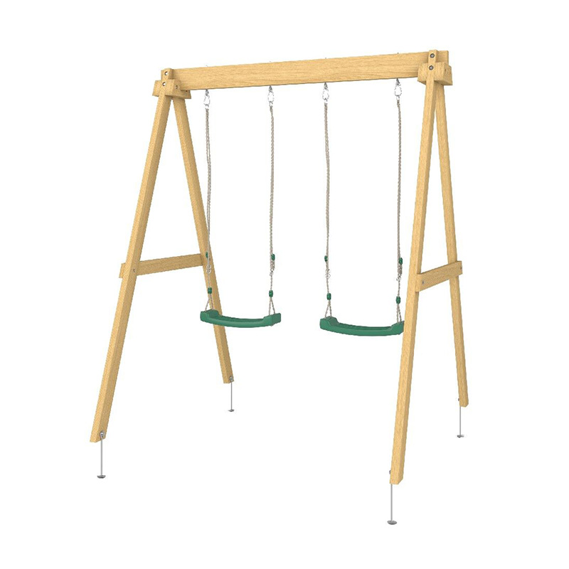 স্থিতিশীল স্কোয়ার বাচ্চাদের সুইং ওয়াইডওয়ে ডাবল সুইং সেট করে আপনার বাচ্চারা উত্তেজনাপূর্ণ অ্যাডভেঞ্চারে যাবে। এই কাঠের সুইংটিতে একটি বিশেষ নমনীয় সুইং সংযোগকারী রয়েছে, যা বৃত্তাকার কাঠের জন্য প্রয়োজনীয় প্লাস্টিক এবং ধাতব সংযোগকারীগুলিকে প্রতিস্থাপন করে। এই সুইং সংযোজকের জন্য ধন্যবাদ ডাবল সুইংটি সহজেই কিছুটা প্রসারিত মরীচি দিয়ে একক দোলে পরিবর্তন করা যায়। শেষ পর্যন্ত, আপনার ছোট্ট অ্যাডভেঞ্চারার একটি আরোহণের নেট বা বানরের সুইং ঝুলিয়ে রাখতে পারে। আরেকটি সুবিধা হ'ল শীতল নকশার কারণে, স্থিতিশীল সুইং সেটটি ছোট বাগানেও ফিট করে।